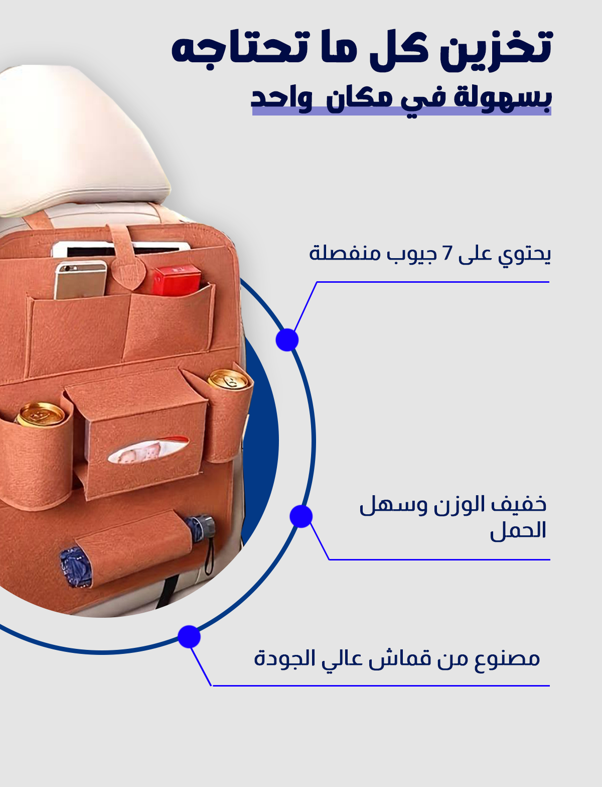 حقيبة تخزين خلفية لمقعد السيارة