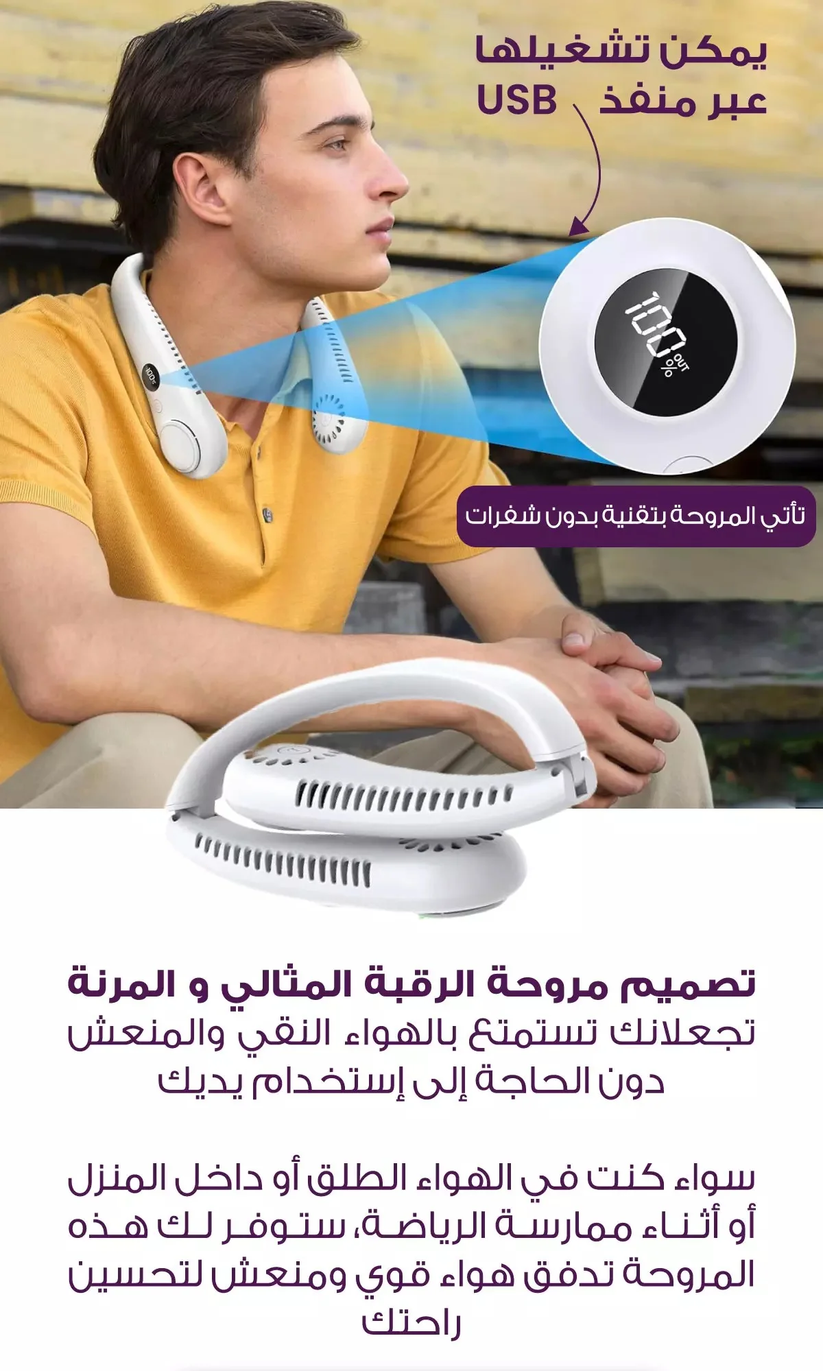 مروحة الرقبة القابلة للطي مبتكرة مصممة لتوفير الراحة والتبريد الشخصي، خاصة في الأيام الحارة أو في الأماكن المغلقة ذات التهوية الضعيفة