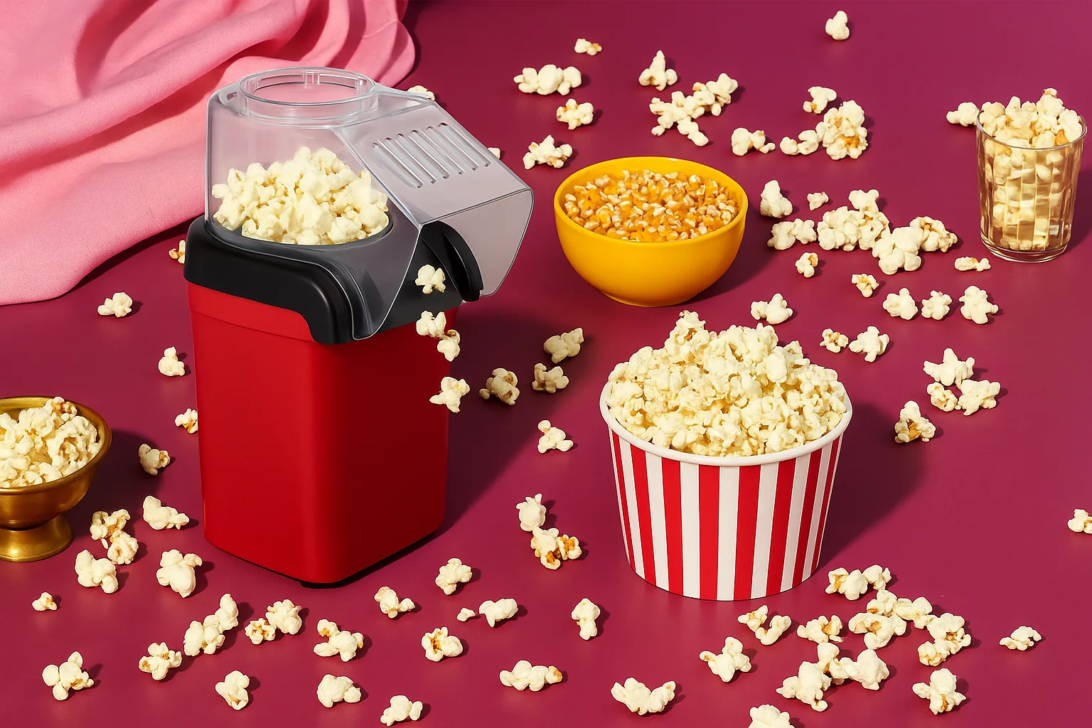 مصنوعة من بلاستيك آمن للطعام ومكونات معدنية متينة، مع تصميم أنيق ومدمج يناسب أي مطبخ، وسهلة التخزين. مثالية للعائلات، ومحبي السينما، وكل من يرغب في وجبات منزلية لذيذة وسريعة.