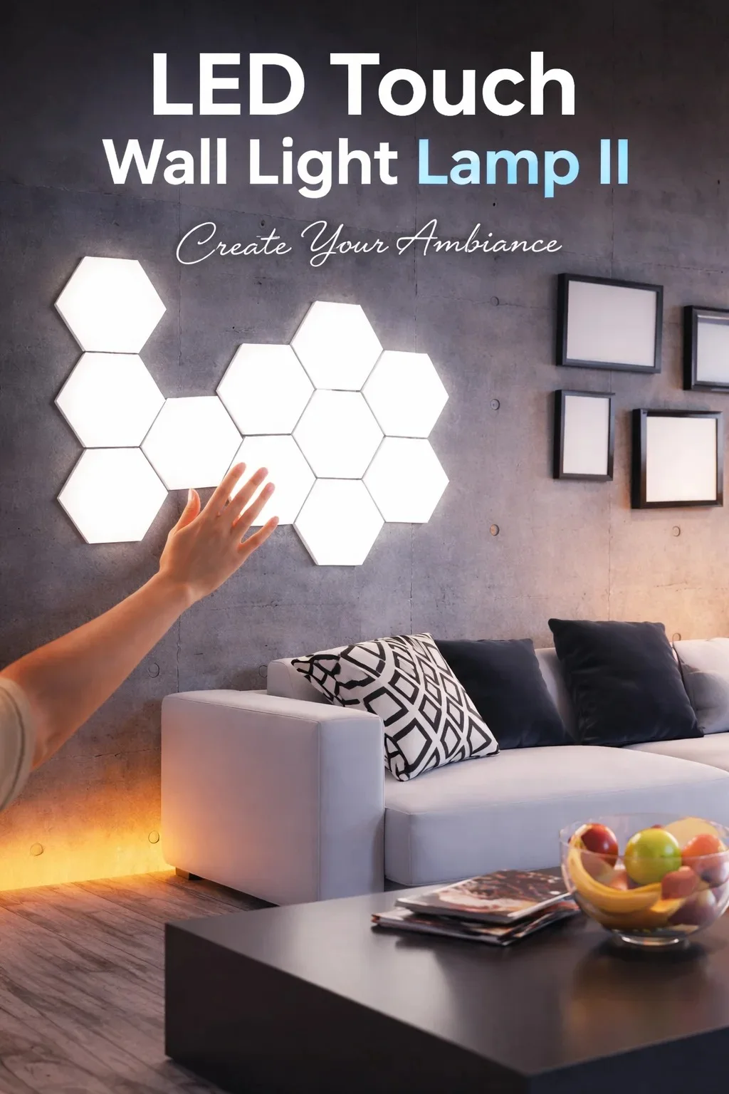 لمبة حائط LED ذكية باللمس : تصميم سداسي عصري وإضاءة أنيقة للمنازل الحديثة